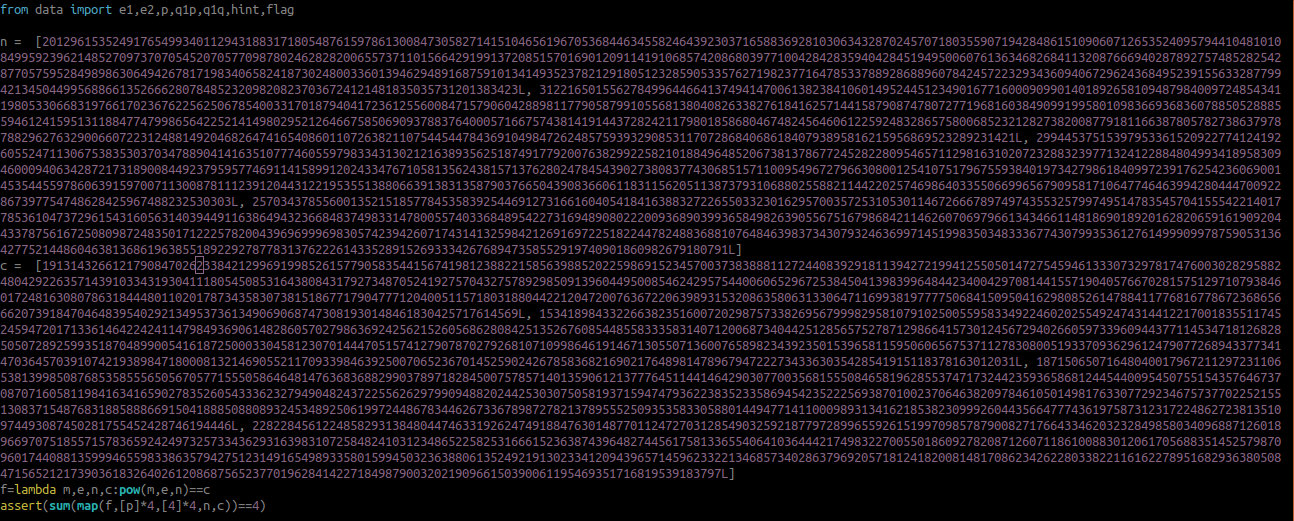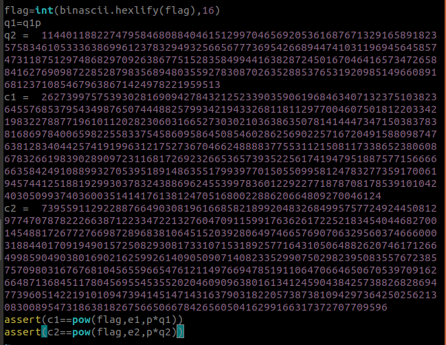 We see that we can get the flag if we know either of the set { e1,p,q1,c1} or { e2,p,q2,c2} .c2,c1,q2 are given.